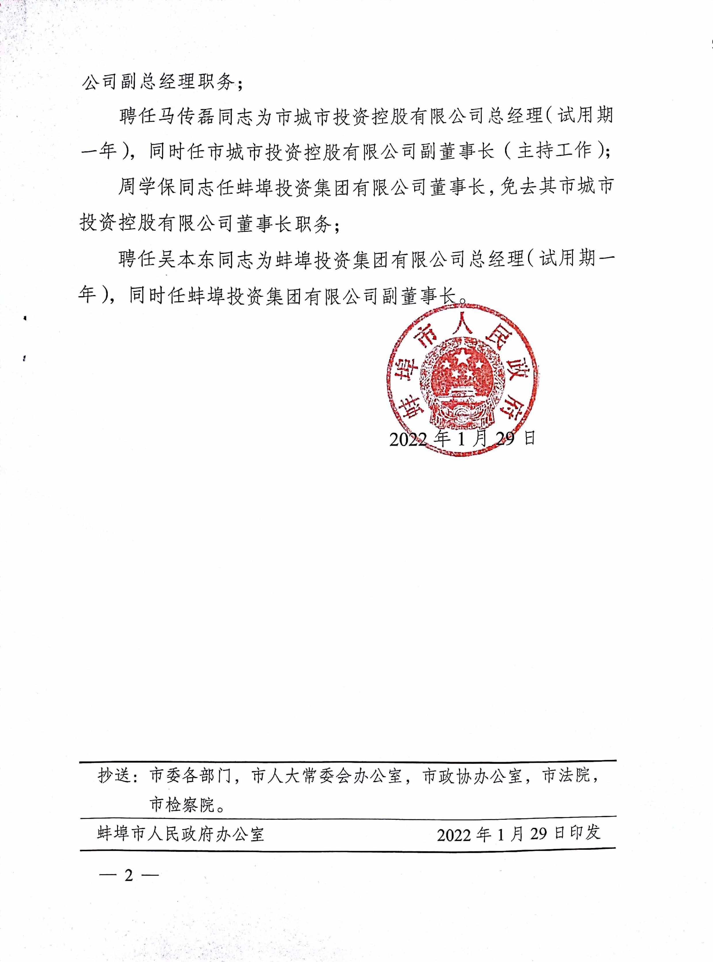 馬傳磊同志任城投公司總經(jīng)理