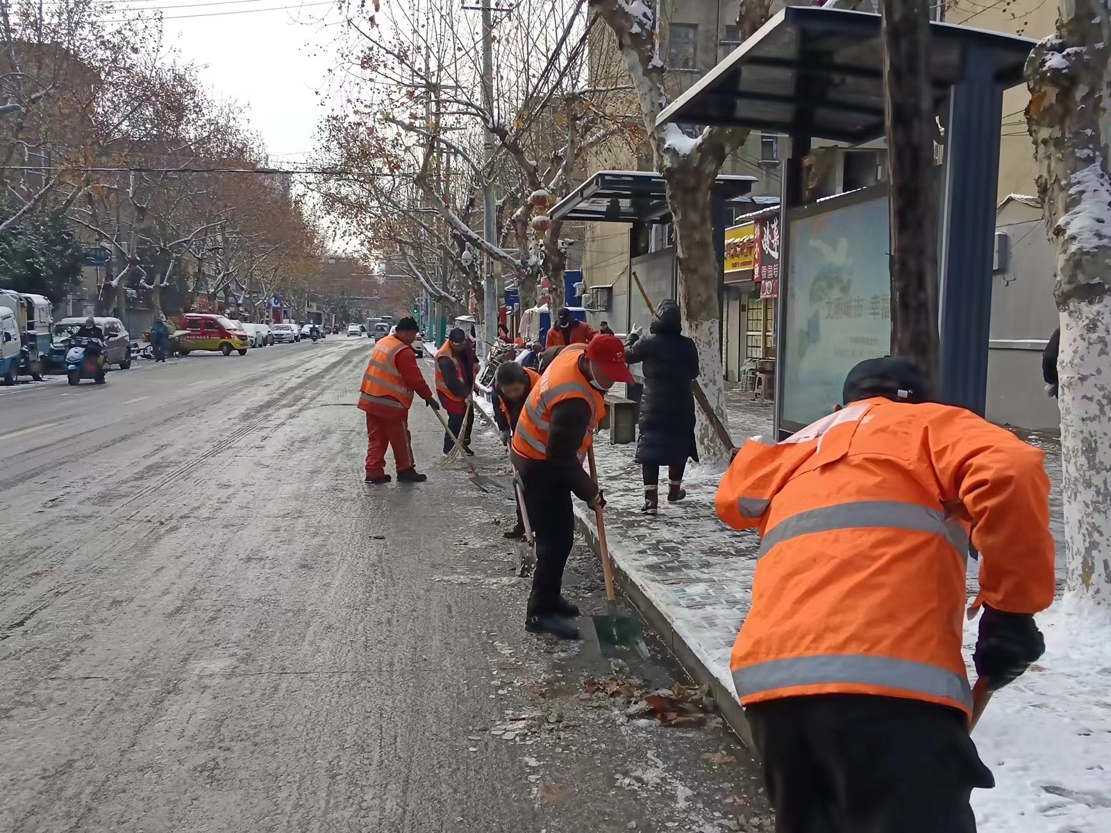 次日上午,城啟環(huán)衛(wèi)搶抓氣溫回升及撒播融雪劑后的有利條件,全員上路加強(qiáng)保潔,在重點(diǎn)路段重點(diǎn)區(qū)域?qū)嵤┤斯ょP雪除冰作業(yè)。截至上午9點(diǎn)30分,城區(qū)主要干道通行順暢;城啟環(huán)衛(wèi)則已開始對次干道及背街小巷進(jìn)行延伸作業(yè)。