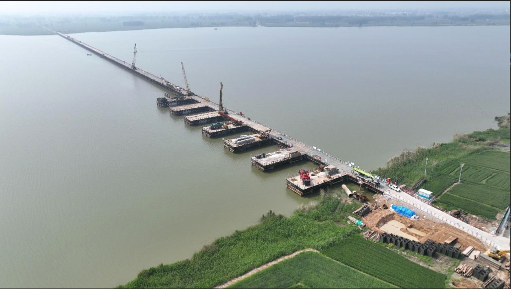 4月19日,隨著最后一塊橋面板鋪設(shè)完成,五蒙高速沱湖特大橋施工鋼棧橋順利合龍,這標(biāo)志著沱湖兩岸的施工便道成功打通,為后續(xù)五蒙高速沱湖特大橋?qū)崿F(xiàn)總工期目標(biāo)提供了強(qiáng)有力的保障。