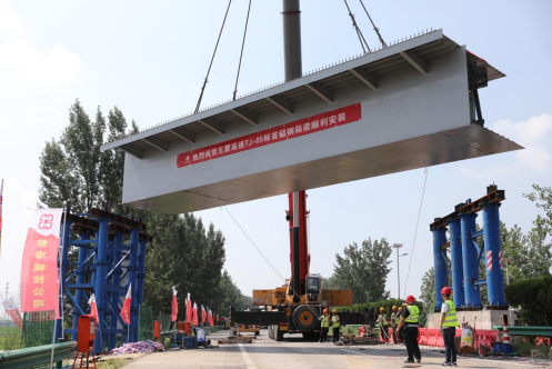 8月3日,五蒙高速TJ-05標包集樞紐跨G3京臺高速首榀鋼箱梁架設(shè)成功,標志著五蒙高速公路全線第一處橋梁上部結(jié)構(gòu)施工順利實施,項目建設(shè)進入施工“快車道”。